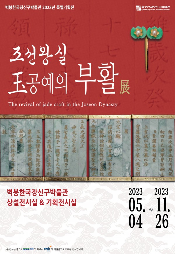 2023 특별기획전 ‘조선왕실, 옥공예의 부활’展은 5월 4일 목요일부터 11월 26일 일요일까지 진행된다. 전시에 대한 자세한 사항은 벽봉한국장신구박물관(031-949-0848)으로 문의하면 된다.