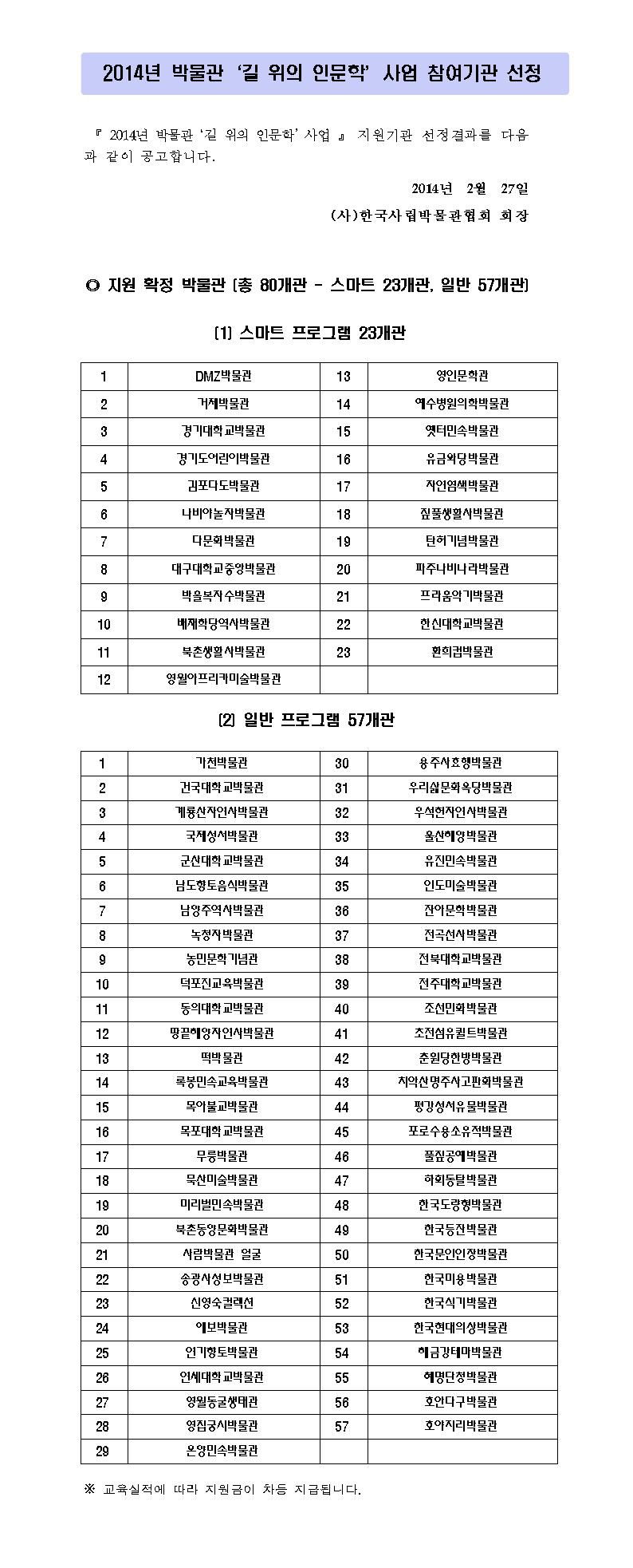 [인문학] 2014년 박물관‘길 위의 인문학’사업 참여기관 선정